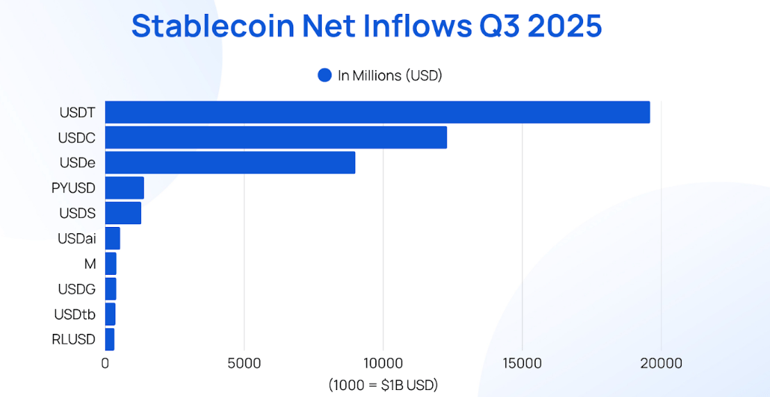 That changed with stablecoins. Over $46 billion flowed into stablecoins in Q3 2025 (a 324% jump over Q2). But the real breakthrough isn’t the inflow. It’s who is moving the money.