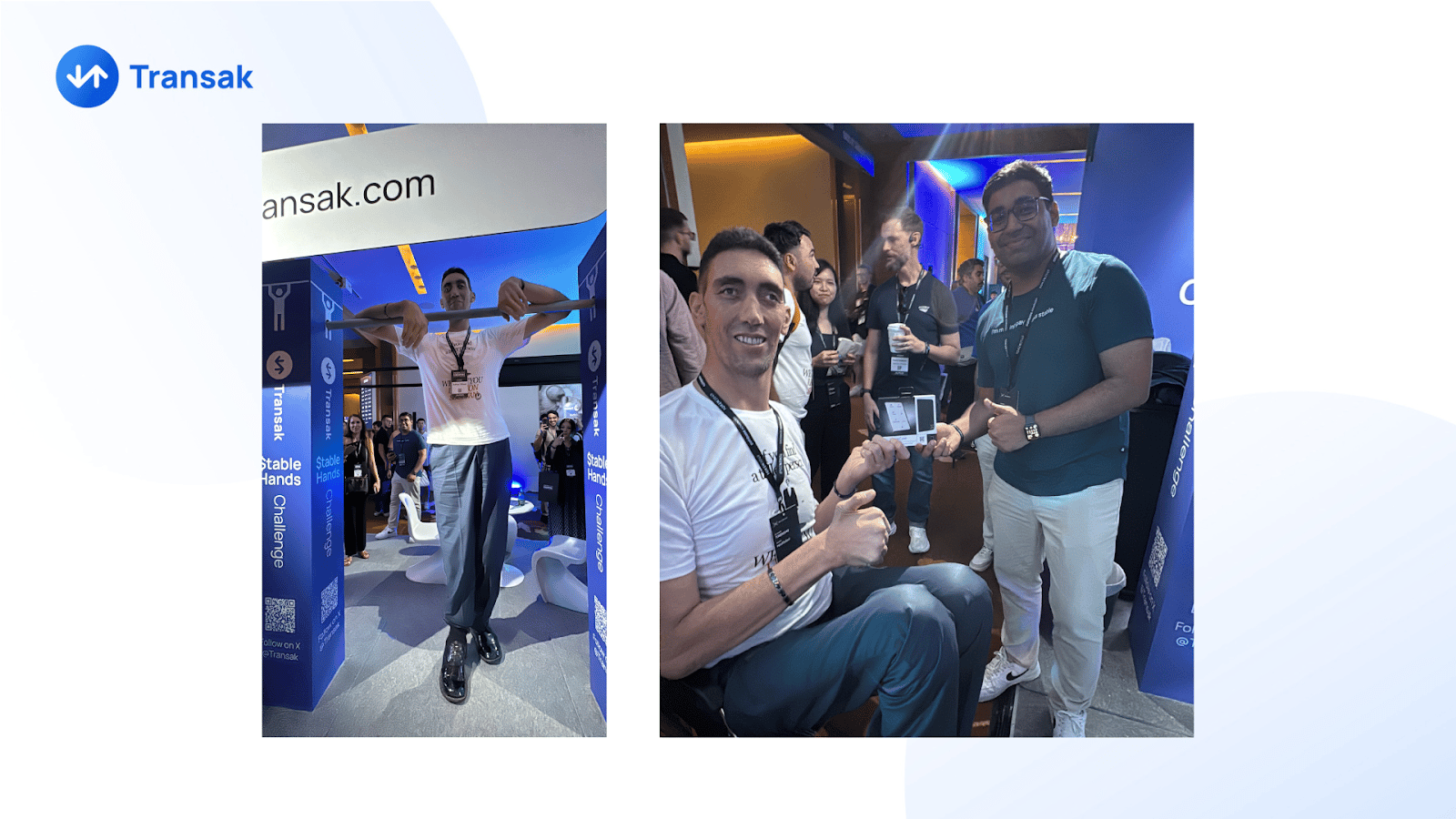 🚶 World’s tallest man, Sultan Kösen, receives a Ledger Stax from Transak for competing in Transak Stable Hands challenge at TOKEN2049 Singapore.