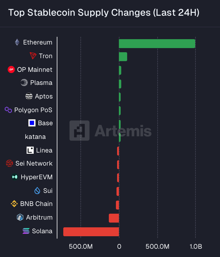 Most of that liquidity came from USDT and USDC being bridged out. A clear sign that traders are playing it safe after the recent $130 billion market cap wipeout across crypto.